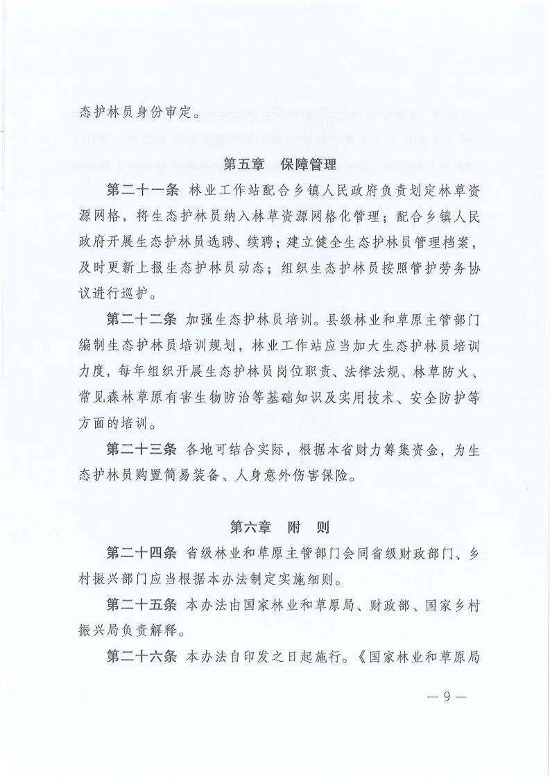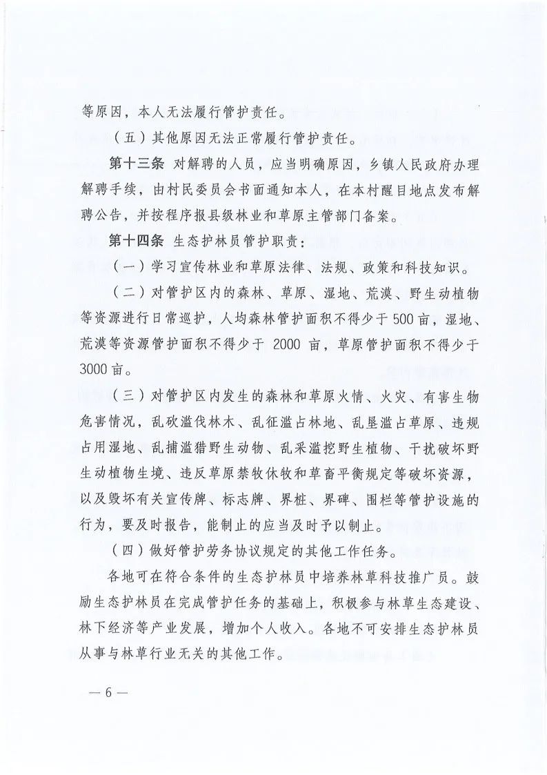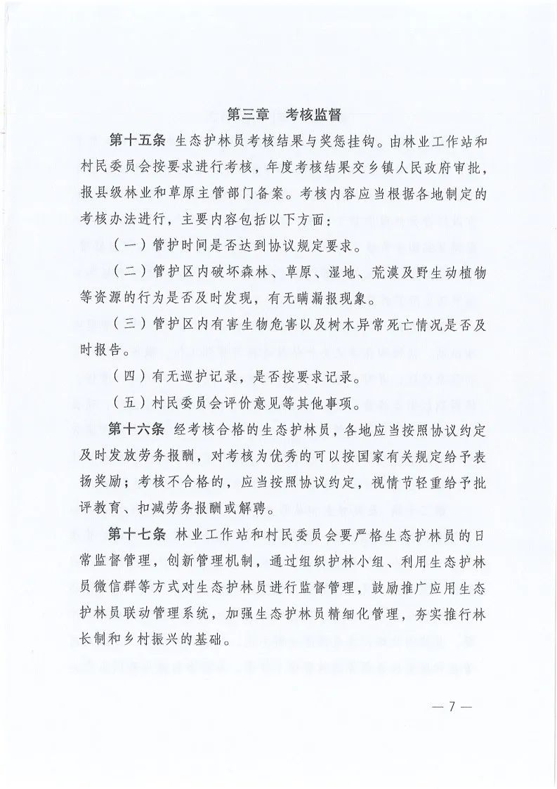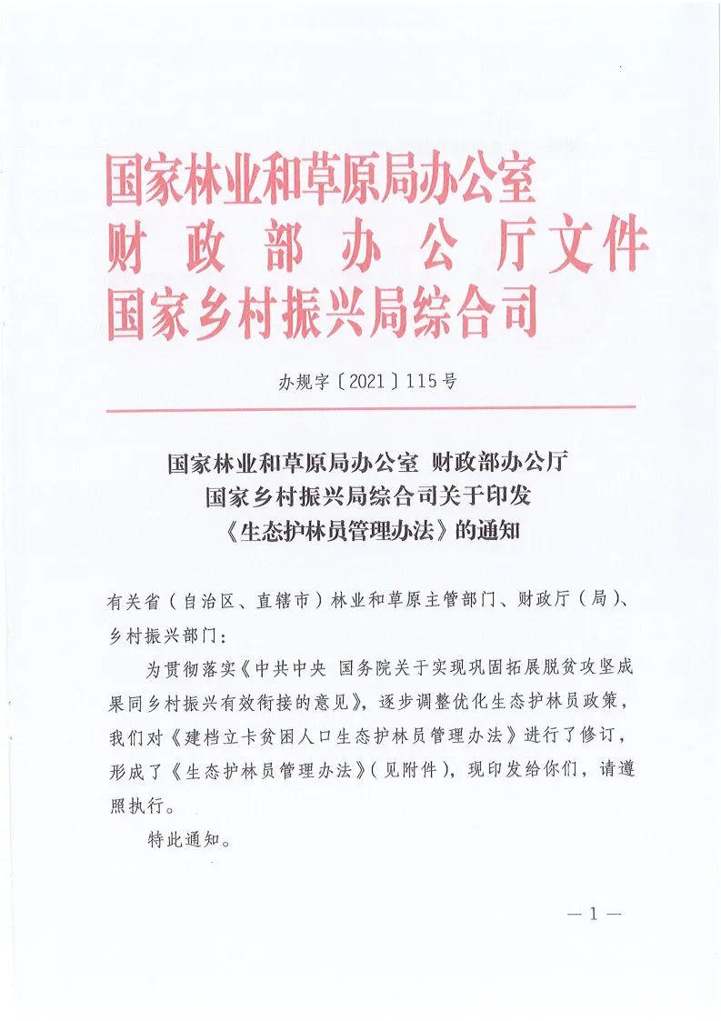 《生态护林员管理办法》的通知